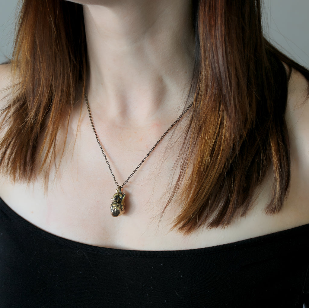 Anatomical Heart Pendant Sterling Silver - 3D Human Heart Jewelry Necklace
