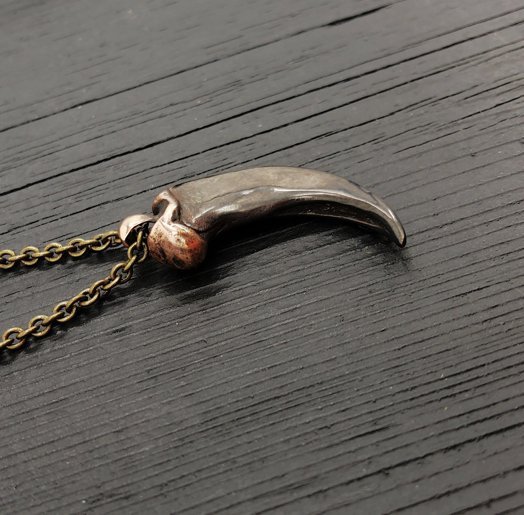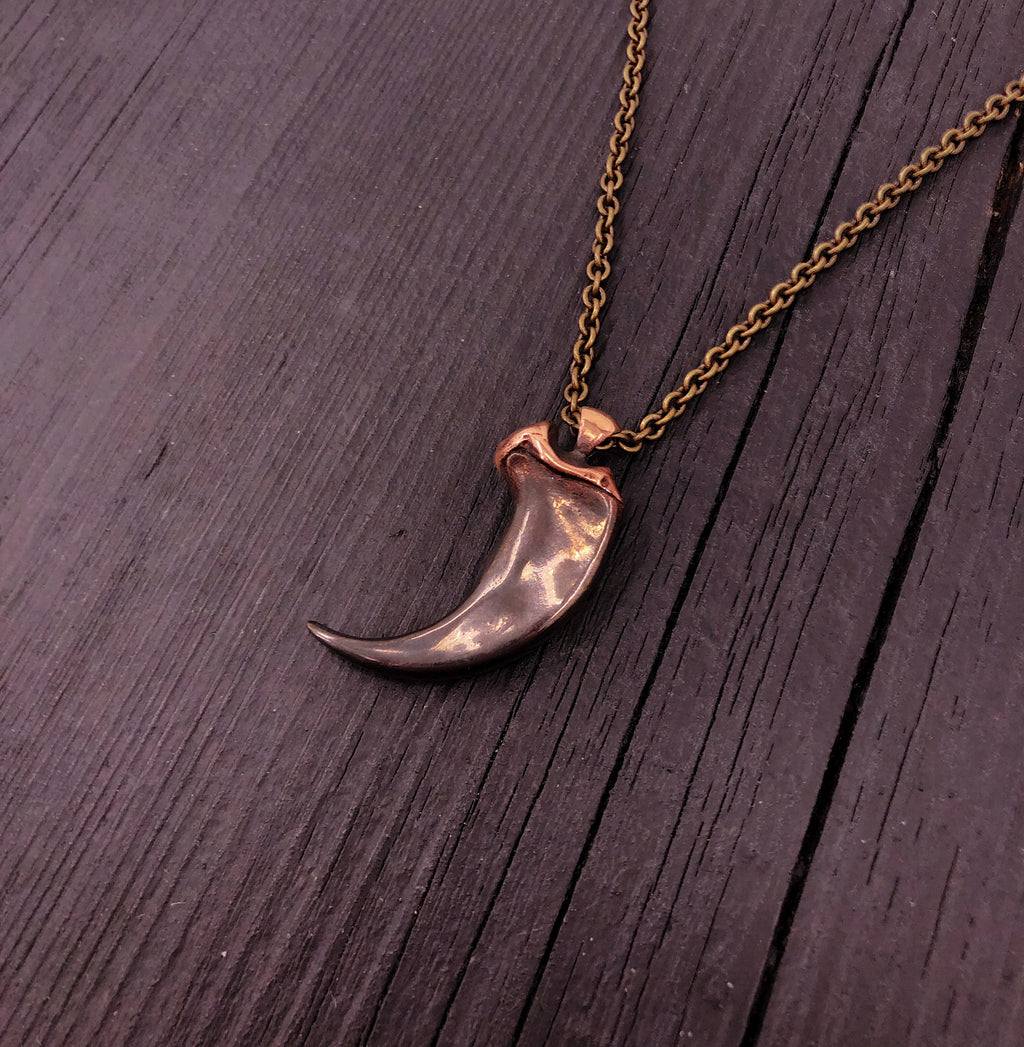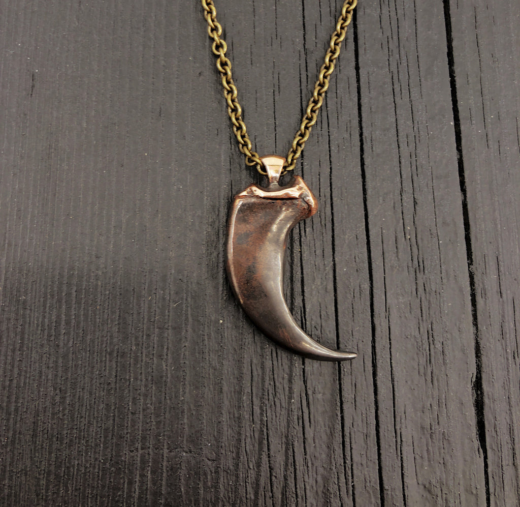 This striking Black Bear claw pendant is a bold piece of wilderness-inspired jewelry, cast from a real claw using the traditional lost wax method in solid jeweler’s bronze. Every curve and ridge of the original claw is captured in remarkable detail, making this a truly authentic and rugged accessory.