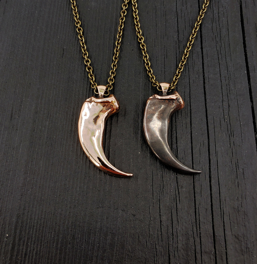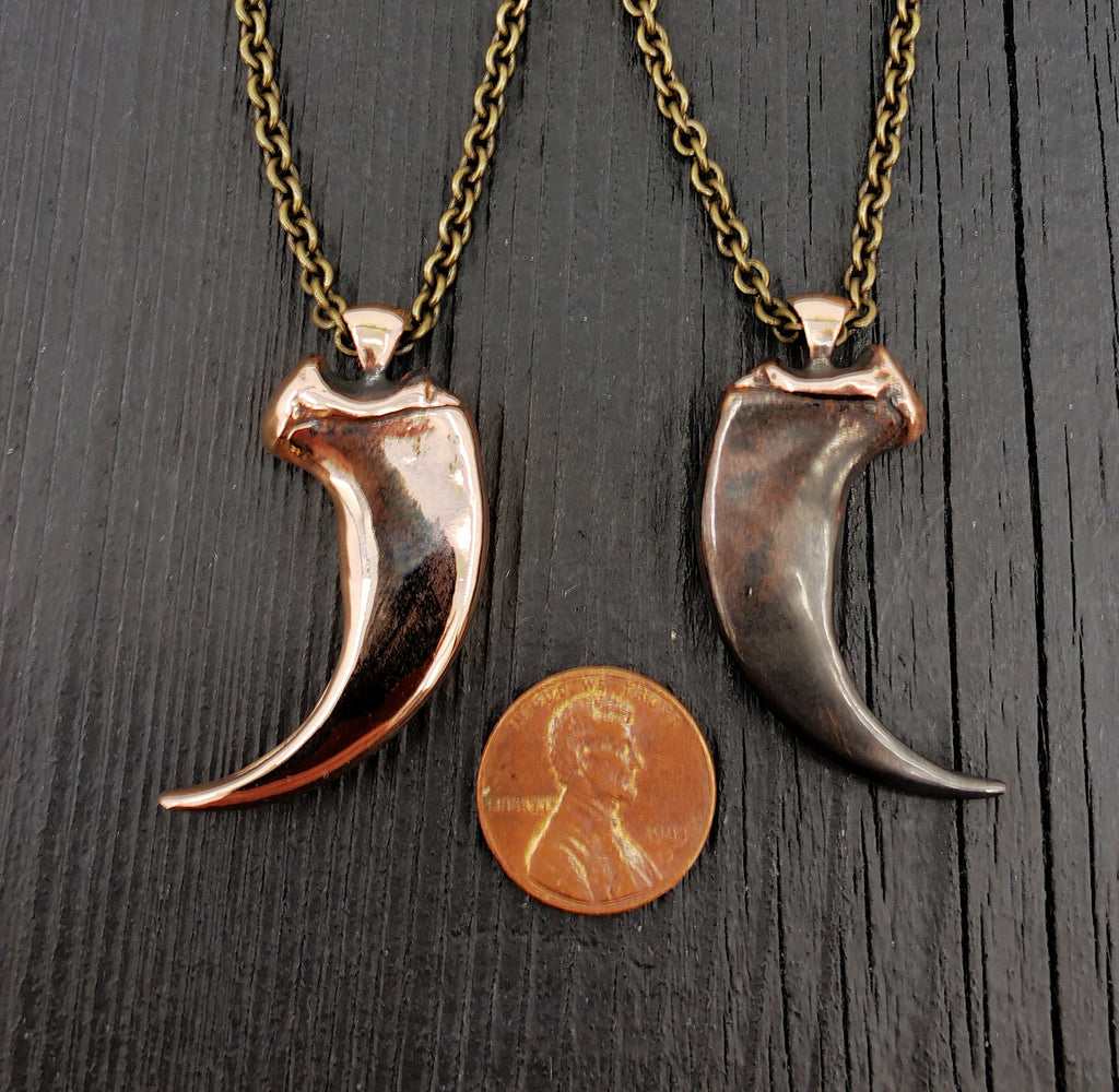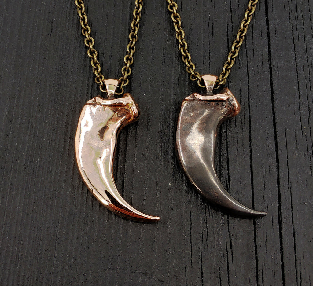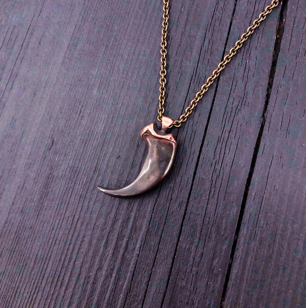 This striking Black Bear claw pendant is a bold piece of wilderness-inspired jewelry, cast from a real claw using the traditional lost wax method in solid jeweler’s bronze. Every curve and ridge of the original claw is captured in remarkable detail, making this a truly authentic and rugged accessory.